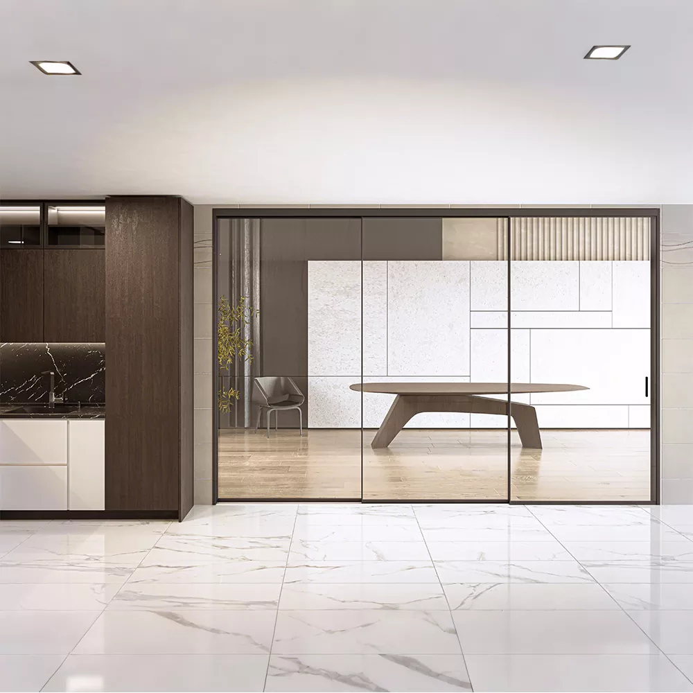 చాలా ఇరుకైన స్లైడింగ్ డోర్ అనేది సాంప్రదాయ స్లైడింగ్ డోర్ యొక్క భారీ అనుభూతిని విచ్ఛిన్నం చేయడానికి 1.5-2 సెంటీమీటర్ల అత్యంత ఇరుకైన అంచుతో అల్ట్రా-ఇరుకైన ఫ్రేమ్ + మినిమలిస్ట్ ట్రాక్ డిజైన్ను ఉపయోగించడాన్ని సూచిస్తుంది, ఇది స్థలాన్ని మరింత పారదర్శకంగా మరియు బహిరంగంగా చేస్తుంది. ఇది ఒక చిన్న అపార్ట్మెంట్ యొక్క సామర్థ్యాన్ని విస్తరించడానికి లేదా ఒక పెద్ద ఫ్లాట్లో లగ్జరీ భావాన్ని పెంపొందించడానికి అయినా, ఇది "అదృశ్య సరిహద్దు" రూపంలో ఫంక్షన్ మరియు సౌందర్యాల మధ్య సంపూర్ణ సమతుల్యతను సాధించగలదు.